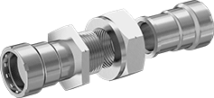 Straight union connectors separate into three pieces. Unscrew and remove the center nut for quick access to a line.