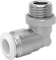Fittings are 316 stainless steel, which has excellent chemical resistance and is more durable than plastic. Also known as instant fittings, they connect to tubing with a push, and an internal gripping ring and O-ring hold the tubing tight. Instead of a release ring, these fittings have a release sleeve that slides back to disconnect tubing.