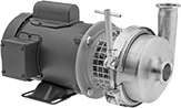 Commonly used in food, beverage, and dairy processing, these pumps are 3-A certified to meet sanitary design standards. They have quick-clamp intake and discharge connections to facilitate cleaning. The discharge connection rotates 360° for easy connection to your line. Motor is totally enclosed fan-cooled (TEFC) for use in dusty, dirty, and damp environments. Pumps are gravity fed and require an elevated liquid source. Do not run dry or use with solids.