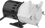 Eliminate seal wear and leakage with pumps that use magnets to turn the impeller. They’re often used with electroplating and photographic solutions. Pumps are gravity fed and require an elevated liquid source to fully fill the pump before turning on. Do not run dry or use with solids.