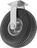 These wheels cushion just as well as pneumatic casters over smooth or rough surfaces but are filled with polyurethane foam so they won't go flat. Their dual-wheel design provides better load distribution and easier turning than single-wheel casters.