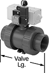 With a PVC body and a fluoroelastomer seal that can withstand aggressive and corrosive solutions, these valves are often used in chemical-processing applications. Their ball-valve design provides higher flow rates than other air-driven valves. They operate on compressed air to automatically start and stop flow faster than motor-driven valves. You must control the air to the actuator using either the included electric pilot valve or a manual on/off valve (not included). These valves don’t require a minimum pressure drop between the inlet and outlet for operation. They are full port, so they do not restrict flow.
