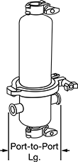 For Tube OD | Flange OD | Steam Capacity | 98% Efficiency | 100% Efficiency | Max. Pressure, psi | Max. Temp., °F | Cartridge Useful Life | Port-to-Port Length | Overall Height | Specifications Met | Each | Each | ||