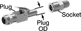 Couplings consist of a plug and a socket (sold separately) that join with a latch, so you can frequently connect and disconnect your line. To connect, insert the plug into the socket; to disconnect, press the latch and remove the plug. Plugs and sockets are 316 stainless steel for excellent corrosion resistance.