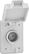 Plugs mate with female receptacles and female sockets with an attached cover.