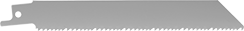 This blade is stiffer than other blades for making straight cuts in wood. It has a 1/2" universal shank that fits most reciprocating saws. Also known as a bimetal blade, it has a flexible carbon steel body with high-speed steel teeth. Tooth size and number per inch are constant throughout the blade.