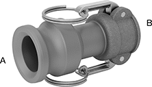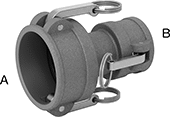 Made of metal, these couplings have better durability than plastic cam-and-groove couplings. A complete coupling consists of a plug and a socket (both sold separately) that allow you to quickly connect and disconnect medium-to large-diameter hose lines. To connect, insert the plug into the socket and press the levers down. The levers fit snugly into the groove on the plug’s body and force the plug against the gasket to form a tight seal. To disconnect, lift both levers and pull out the plug. Couplings are compatible with Andrews, Dixon, Ever-Tite, and PT cam-and-groove couplings.