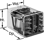 Number of Terminals | Input Voltage | Control Power | Switching Current @ Voltage (Light Technology) | Max. Switching Voltage | Mechanical Life Cycles | Ht. | Wd. | Dp. | Each | |