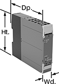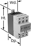 Number of Terminals | Input Voltage | Control Power | Full Load | Resistive Load | Max. Switching Voltage | Single Phase | Three Phase | Ht. | Wd. | Dp. | Each | |