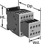 Number of Terminals | Input Voltage | Control Current, mA | Switching Current @ Voltage | Max. Switching Voltage | Single Phase | Three Phase | Auxiliary Contact Switch Starting Position | Ht. | Wd. | Dp. | Features | Each | |