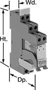 DIN-rail mount relays snap onto 35 mm DIN rail (also known as DIN 3 rail) for fast installation.