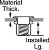 Install these nuts in a drilled or punched round hole using a rivet nut tool. The tool collapses the nut, creating a backside flange that holds the nut to the material.