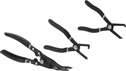 Pull out plastic push-in rivets without scratching or deforming the surface they’re installed in. These tools are also known as panel-clip pliers and trim-clip pliers.