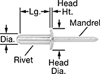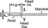 To install these rivets, you’ll need a blind rivet tool (sold separately). Be sure to pick a tool that’s compatible with your rivet’s diameter and material. For more information on installing rivets, see About Installing Blind Rivets.