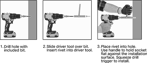Pair these tools with your drill to install hex-drive rivets—also known as fab-lock fasteners—faster than with a wrench and socket.