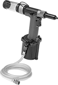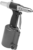 Use these tools for repair and maintenance work. Compressed air creates a vacuum that securely holds the rivet in the tool before installation and ejects the mandrel out of the tool after. A collection bottle catches spent mandrels. Tools have changeable nosepieces—use the nosepiece that matches your rivet's diameter.