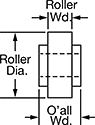 Dia. | Wd. | For Shaft Dia. | Wd. | Dp. | Overall Wd. | Dynamic Radial Load Capacity, lbs. | Shaft Mount Type | No. Required | Included | Temperature Range, °F | Durometer (Hardness Rating) | Each | |