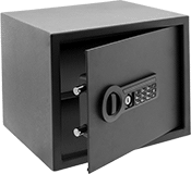 | 6 5/8" | 9" | 6 5/8" | 6 1/2" | 8 7/8" | 6 1/2" | Powder-Coated Steel | Electronic Push Button | __ | Backup Key | __ | 8 | Yes | 4 | AA | No | __ | Black | 4932T17 | 000000 |
