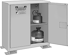 Store your flammables outdoors in these weather- and rust-resistant cabinets. They have a sloped top with a front overhang, a water-resistant seal, and a raised door sill to contain spills.