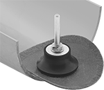 The flexible edge of the sanding disc overhangs these backup pads. Secure the shank into the collet or chuck of your tool, then attach the quick-change fastener on the sanding disc to the corresponding fastener on the backup pad.