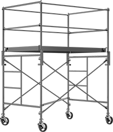 10'10" | 5 | Painted Steel | Black | 2,000 | 4" | Four Swivel Casters | 4 | Unassembled | Bottom Diagonal Brace, Four Cross Braces, Four End Frames, Guardrail Posts, Guardrail/Midrail, Midside Rail, Toeboard, Top Rail | OSHA Compliant 29 CFR 1926.451, ANSI/ASSP A10.8 | 0000000 | 00000000 |