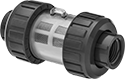 These strainers are clear so you can monitor debris collecting in the screen. They are PVC, which is lightweight with excellent corrosion resistance. Use them in place of regular fittings to catch particles in your pipeline and protect sensitive equipment. The screen is in the strainer body to save space. Strainers have two threaded union end connections that allow you to remove debris without detaching the pipe connections.