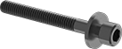 Screws are alloy steel with a tensile strength of 180,000 psi, making them stronger than Grade 8 steel screws and more than two and a half times stronger than stainless steel screws with a split lock washer. Their black-oxide finish provides mild corrosion resistance in dry environments. Also known as Sems screws, they have a permanently attached but freely rotating split lock washer that adds tension to resist loosening from vibration. Length is measured from under the head.