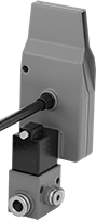 IP65 switches protect against dust and splashing water.Switches with a solenoid valve allow you to control air-powered conveyor drives directly from the switch.