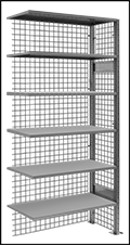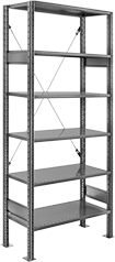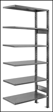 Faster to assemble than other heavy duty shelving, these units require no hardware. The uprights come assembled, and shelves slide into place. Shelves can be tilted by raising the back of the shelf one or two lug positions, allowing items to flow forward for easy access.