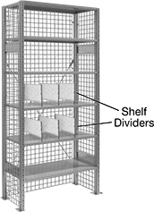 Shelf dividers fit into the slots on the shelf surface and keep shelf contents organized.