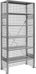 The high-capacity shelves on these units pull out to access heavy dies, machinery, and tools. They slide on ball bearings so you can retrieve contents horizontally with a forklift and vertically with a hoist, crane, or monorail system. When fully extended, they lock in place.