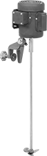 Manually control and monitor mixing. Also known as direct-drive mixers, they operate at high speeds for rapid turnover. Use them to mix liquids with a viscosity similar to water and light oils. Adjust mixing speed with the needle valve. Mixers have a removable shaft and a built-in propeller. Propeller is left hand and moves clockwise when viewed from above to direct flow downward for efficient mixing.