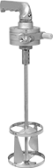 Mix and dispense from the same container. Also known as direct-drive mixers, these operate at high speeds for rapid turnover. Use them to mix liquids with a viscosity similar to water and light oils. Adjust the mixing speed with the needle valve. Propeller is left hand and moves clockwise when viewed from above to direct flow downward for efficient mixing.
