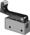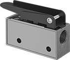 A simple automation solution that requires no programming, these valves are activated when an object, such as a box rolling on a conveyor, pushes the actuator. Also known as 3-way and 3/2 valves, they create one action, such as extending a cylinder. Valves direct airflow from the inlet to your equipment and exhaust return airflow to create motion. Return actuation is by spring, so they go back to their starting position as soon as the actuator is released. In the off position, they exhaust air pressure from the system, allowing equipment to reset so the action can be repeated.