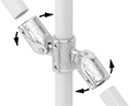 Adjustable-angle fittings can be positioned at any angle. Tighten the set screw to secure.