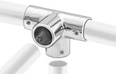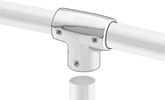 Tee with through hole allows rails to run all the way through.