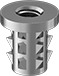 Mount these inserts flush or below the material’s surface. They have barbs that dig into softwood for a secure hold. Made of zinc alloy, they are mildly corrosion resistant. Hammer them into a drilled hole to install.