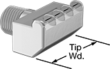 @ 500 psi | @ 1,000 psi | @ 2,000 psi | @ 3,500 psi | Orifice Dia. | Overall Wd. | Lg. | Max. Pressure, psi | Max. Temp., °F | Cover Material | Spray Angle | Each | |