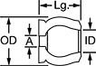 Lg. | OD | ID | OD | Thick. | Compressed Lg. @ Max. Load | Max. Load, lbs. | Spring Rate, lbs./in. | Material | Hardness | Temperature Range, °F | Each | |