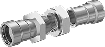 Straight union connectors separate into three pieces. Unscrew and remove the center nut for quick access to a line.