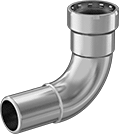 Press these fittings onto stainless steel pipe using a crimping tool for a permanent, leak-tight connection that's faster than threading or welding and doesn't require heat. Fittings have an internal stainless steel gripping ring and rubber O-ring that create a seal when crimped. They are designed to leak if fittings have not been crimped; a colored dot marks the leak path so it's easy to spot unsealed connections. All of these fittings are made of 304 stainless steel to resist corrosion from frequent exposure to water and fuels. They’re often used for water processing lines, heating and cooling systems, and fuel lines. They are comparable to Viega MegaPress fittings.