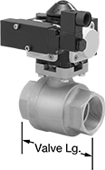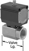 The three-piece bolted body comes apart for access to internal components without unthreading pipe connections and removing the valve from your line. Their ball-valve design allows these valves to achieve higher flow rates than other air-driven valves. They operate on compressed air to automatically start and stop flow. You must control the air to the actuator using either the included electric pilot valve or a manual on/off valve (not included). These valves require a minimum pressure drop between the inlet and the outlet for operation; the upstream pressure must be greater than the downstream pressure. Body is 316 stainless steel for excellent corrosion resistance. All valves have a visual flow indicator on the top of the actuator that shows whether the valve is open or closed.