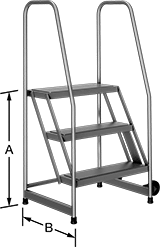 | Style | No. of Steps | Cap., lbs. | Ht.(A) | Wd. (B) | Dp. (C) | Ht. | Wd. | Dp. | Ground Clearance Ht. | Assembled or Unassembled | Wheel Configuration | Specifications Met | Color | Each | No. of Casters | Each | ||