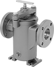 Bronze construction gives these basket strainers better strength and corrosion resistance than iron. They have two baskets so you can divert flow to one basket while you work on the other. Turn the valve handle to direct flow. Commonly used in high-flow industrial processes, basket strainers hold more debris than all of our other strainers. Install them prior to valves, pumps, nozzles, and other sensitive equipment to catch particles in your pipeline. They have a threaded drain with a plug for easy cleaning. Mounting brackets on the bottom allow you to bolt strainers to the floor for stability.