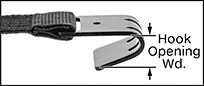 Wd. | Max. Lg., ft. | Fixed End Lg. | Capacity, lbs. | End Fitting Material | Hook Opening Wd. | Buckle Material | Max. Temp., °F | Color | Each | |