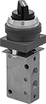 Manually control these valves by pushing or turning the actuator. Also known as 3-way or 3/2 valves, they create one action, such as extending a cylinder. They direct airflow from the inlet to your equipment and exhaust return airflow to create motion. In the off position, they exhaust air pressure from the system, allowing equipment to reset so the action can be repeated.