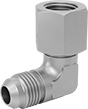 Fittings with a flared tube connection swivel 360° until tightened for easy installation. Those with a 37° flared end are also known as JIC (Joint Industrial Council) fittings.