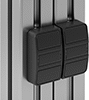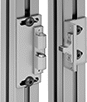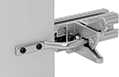 Grab latches work well on lightweight doors. They have a catch that grabs and holds a ball, latching screw, or strike plate to keep doors shut. Rail-to-rail grab latches require a gap between the two rails for doors to close properly. Rail-to-panel grab latches have a ball that threads into a tapped hole on the panel.