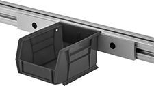 Bin-box holders allow you to hang any storage bin with a lip on a rail. Plastic holders can be used individually, or use multiple together, depending on the size of your bin box.