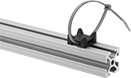 Enclosed-tube cable holders hide and protect cable and tube. Snap the holder into a T-slot, then press cable into the three channels.